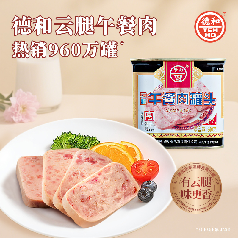 德和云腿午餐肉罐头340g*5罐云南昆明德和罐头厂即食火腿午餐肉