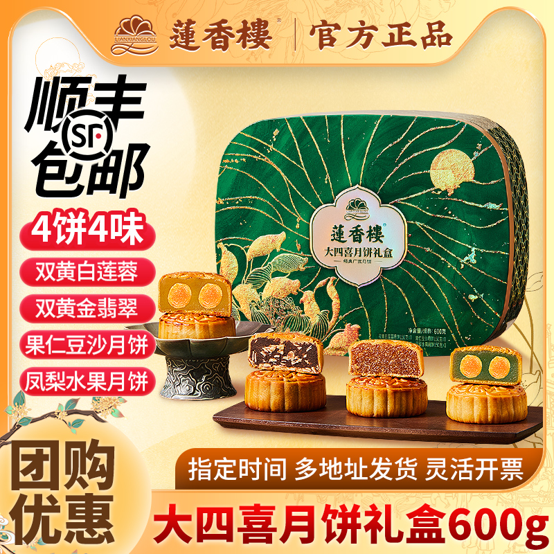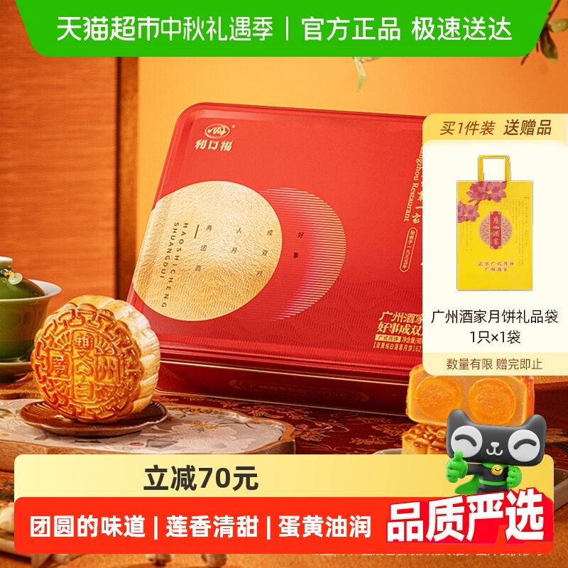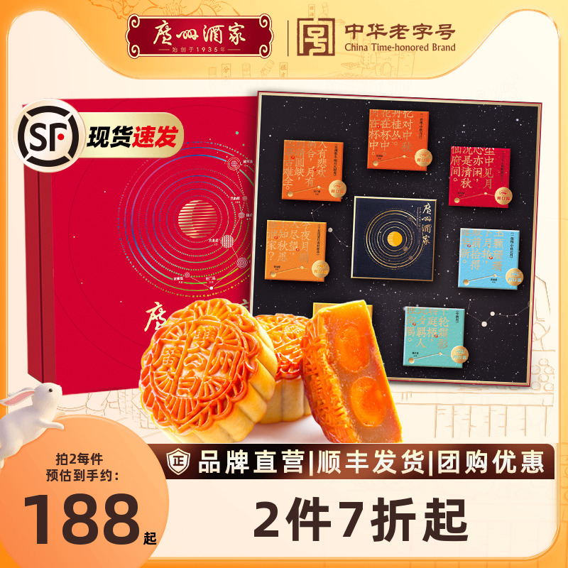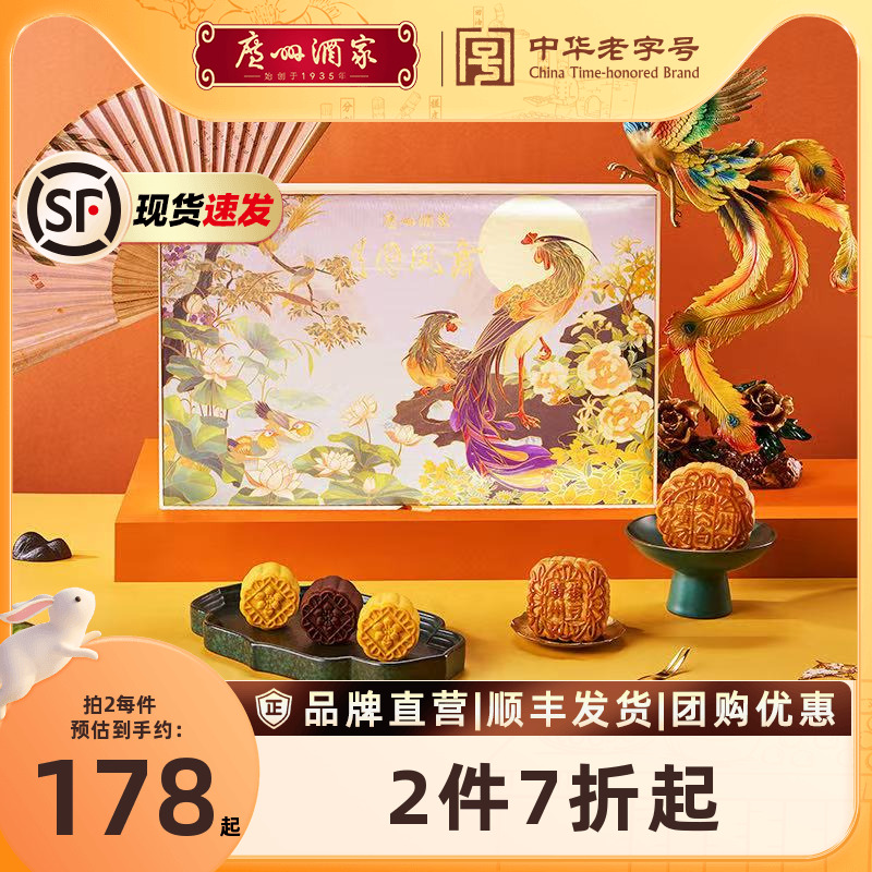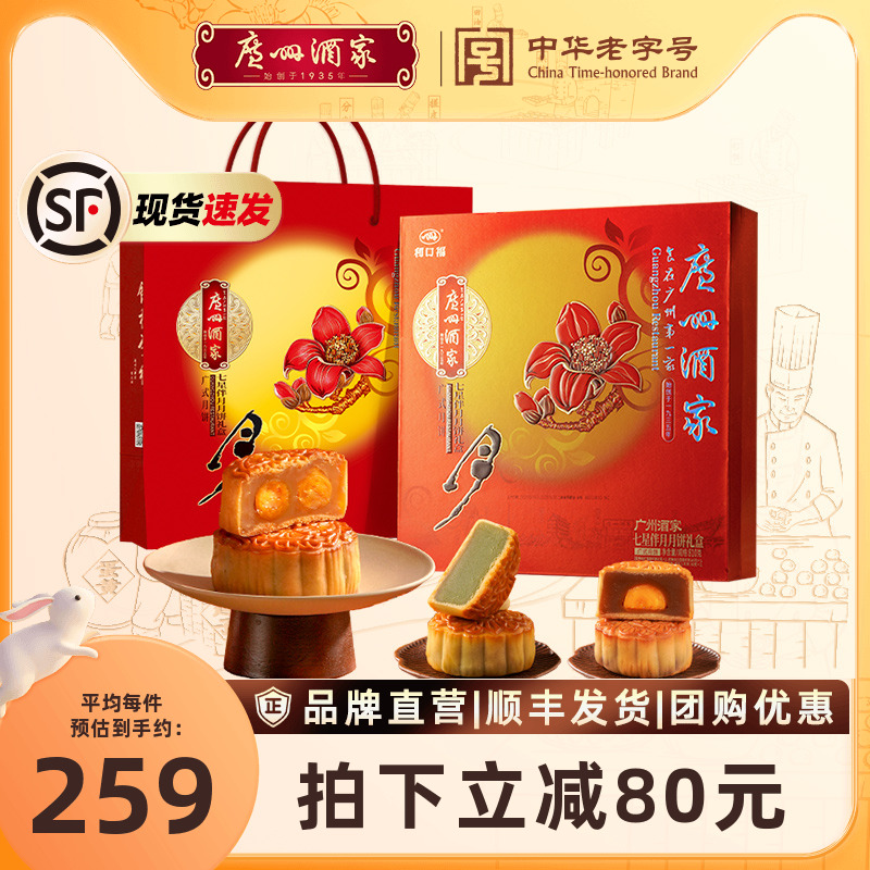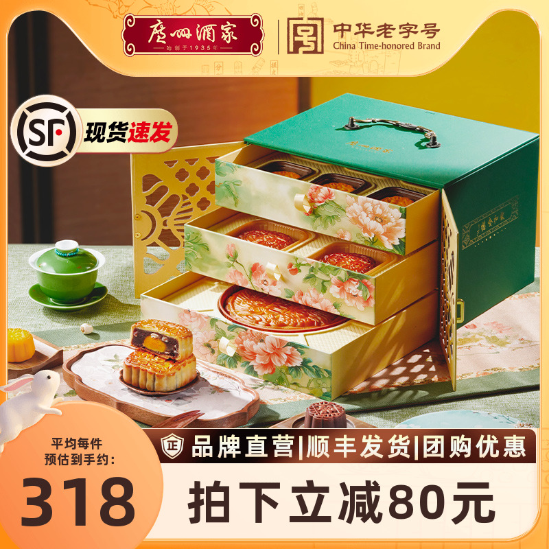 广州官方传统酒家月饼蛋黄莲蓉五仁双黄豆沙礼盒装高档广式送礼