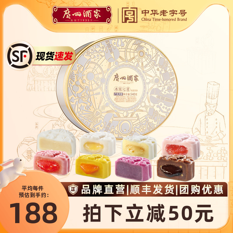 广州酒家冰炫七星冰皮月饼礼盒榴莲芝士广式流心月饼中秋团购送礼