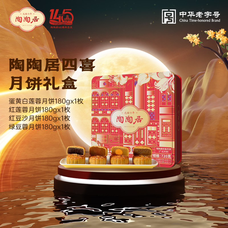 广州陶陶居酒家陶陶喜月月饼礼盒720g蛋黄白莲蓉广式月饼中秋送礼