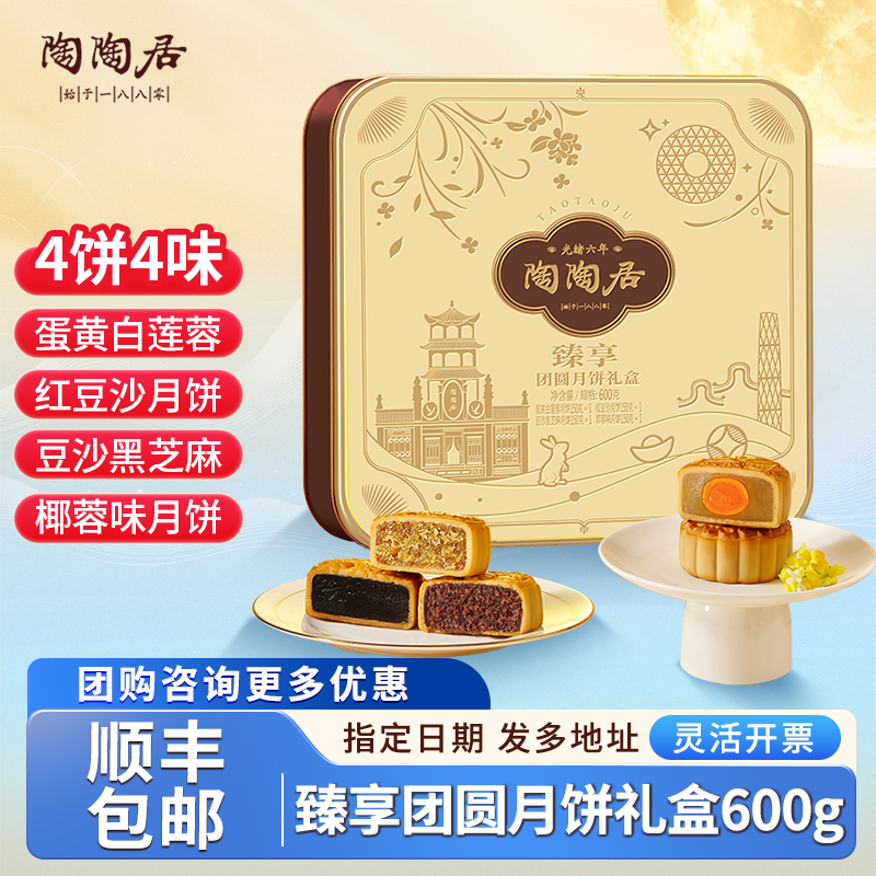 陶陶居月饼陶陶秋月蛋黄白莲蓉600g黑芝麻红豆广式酒家中秋送礼