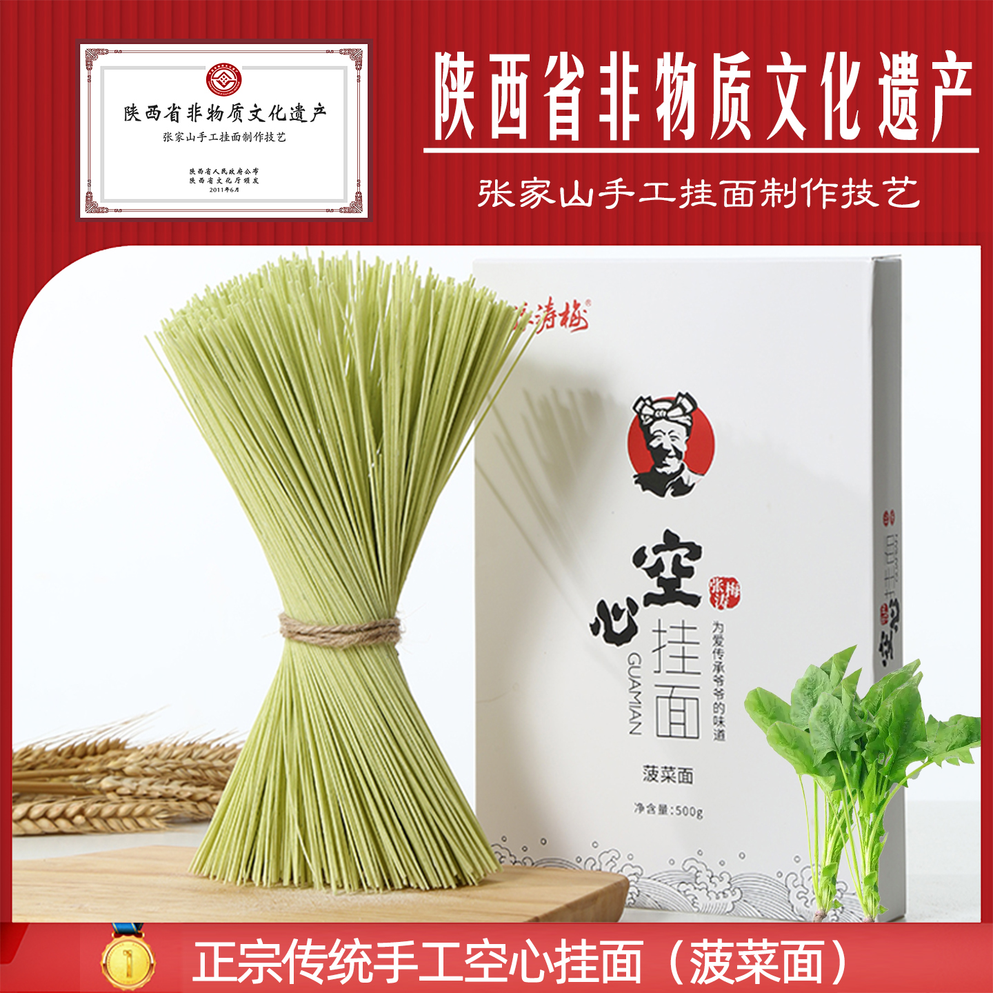 张爷爷手工空心挂面 菠菜面条张涛梅礼盒装龙须面发酵面条500g/盒
