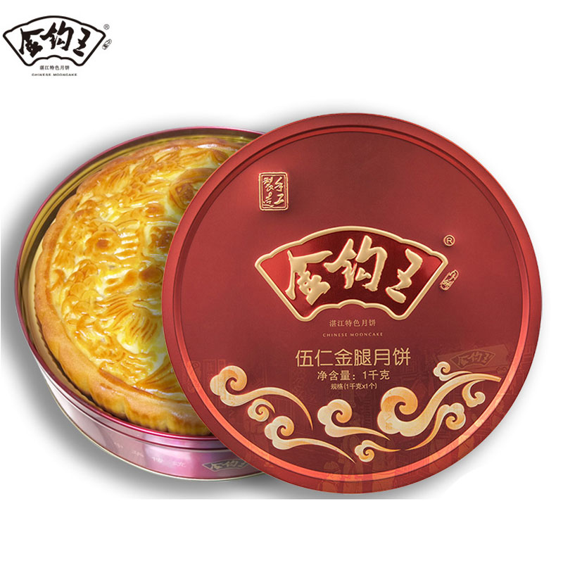 广东梅元居伍仁金腿月饼广式中秋大月饼吴川老式五仁火腿饼铁盒装