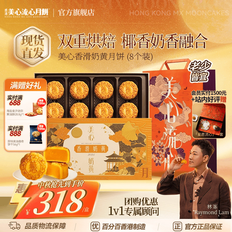 香港美心月饼原装流心奶黄8个装流沙蛋黄月饼礼盒中秋送礼