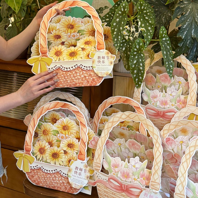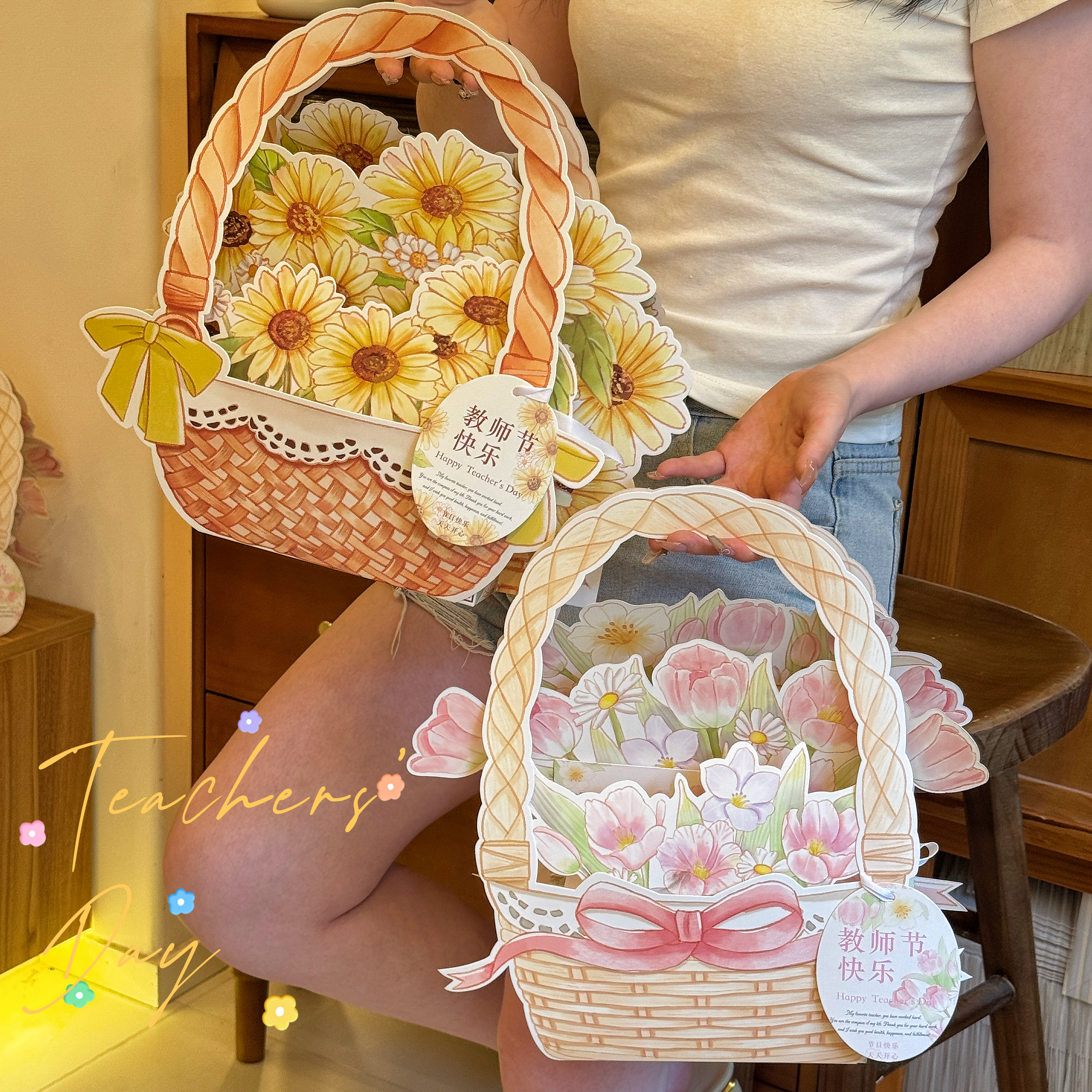 抱抱酱原创版权教师节向日葵郁金香花篮甜品月饼饼干包装盒空礼盒