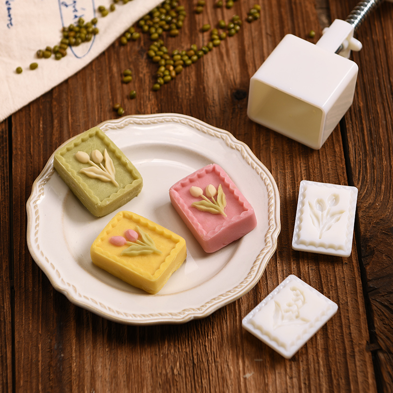 铃兰郁金香长方形50克月饼模具手压可定量调节食品级糕点绿豆蒸糕