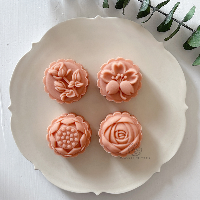 如意坊铃兰花月饼模具50克雏菊百合郁金香花卉桃山皮冰皮绿豆糕