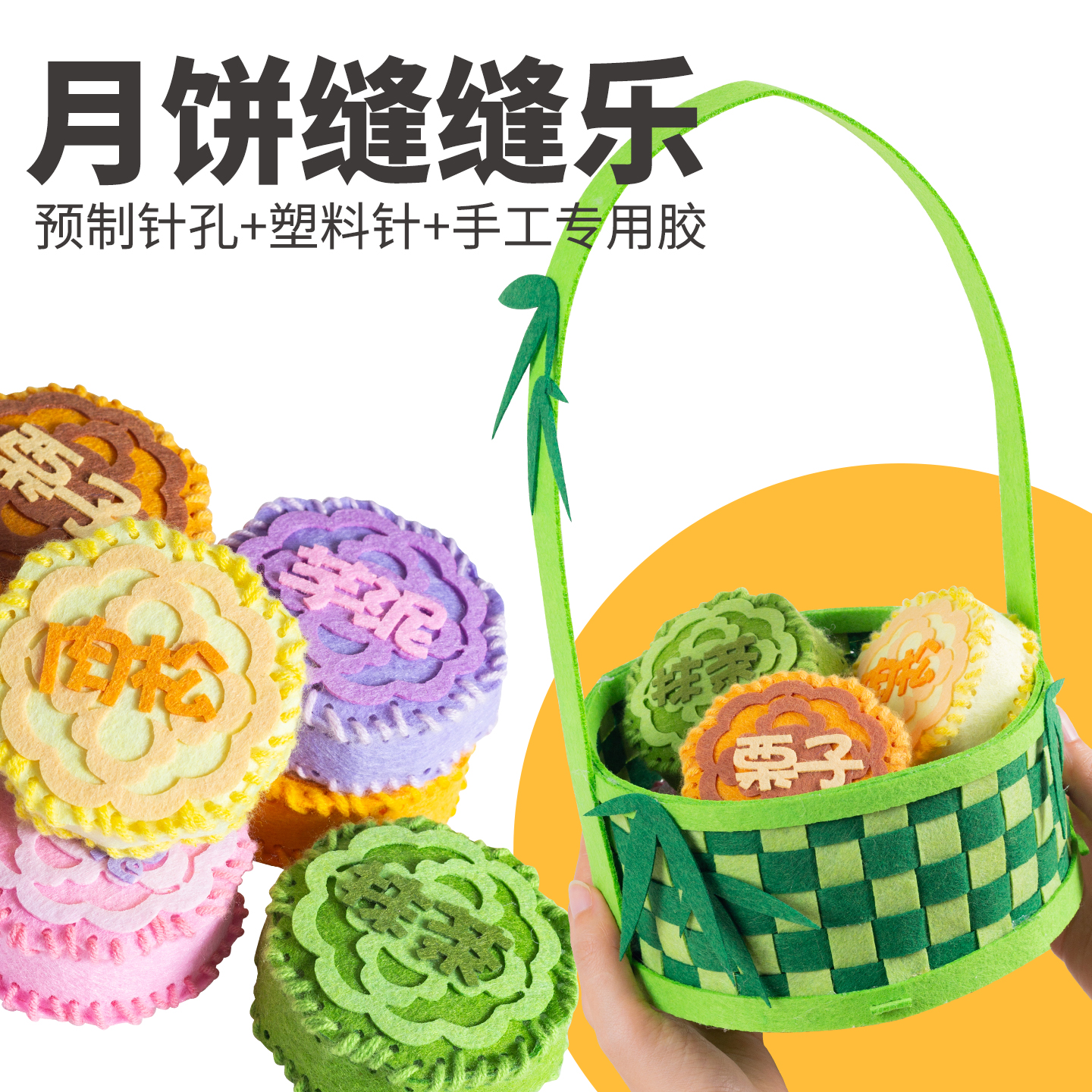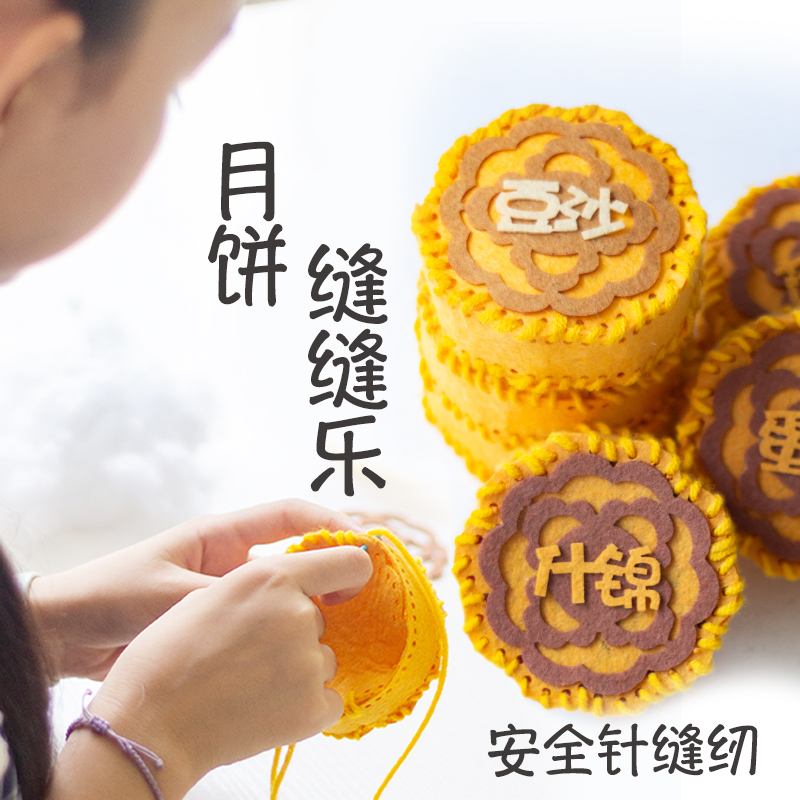 中秋节活动热场不织布月饼手工diy材料包幼儿园活动安全针缝缝乐