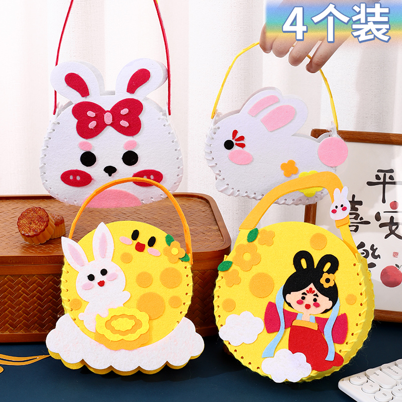 中秋节不织布包包儿童手工缝制diy制作材料礼物月饼兔子包手提包