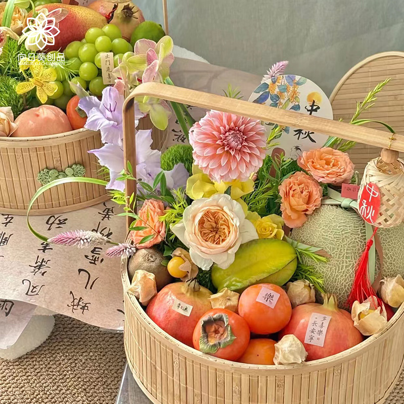 中秋节手工diy材料包水果篮子月饼礼盒花篮包装高档竹编织篮礼品