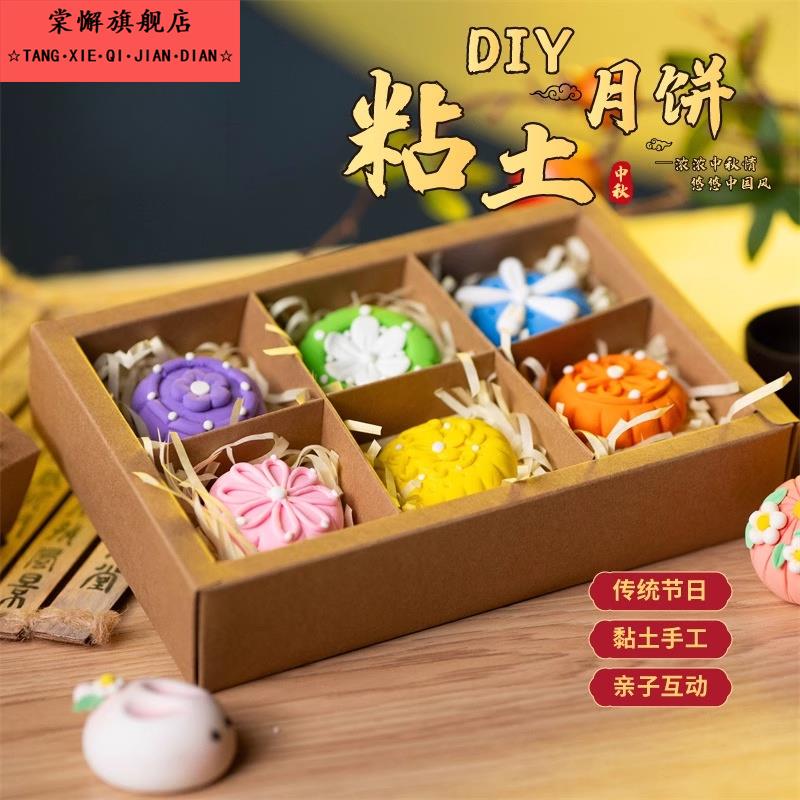 中秋节幼儿园儿童粘土手工礼物diy苏式月饼材料包配模具礼盒食玩