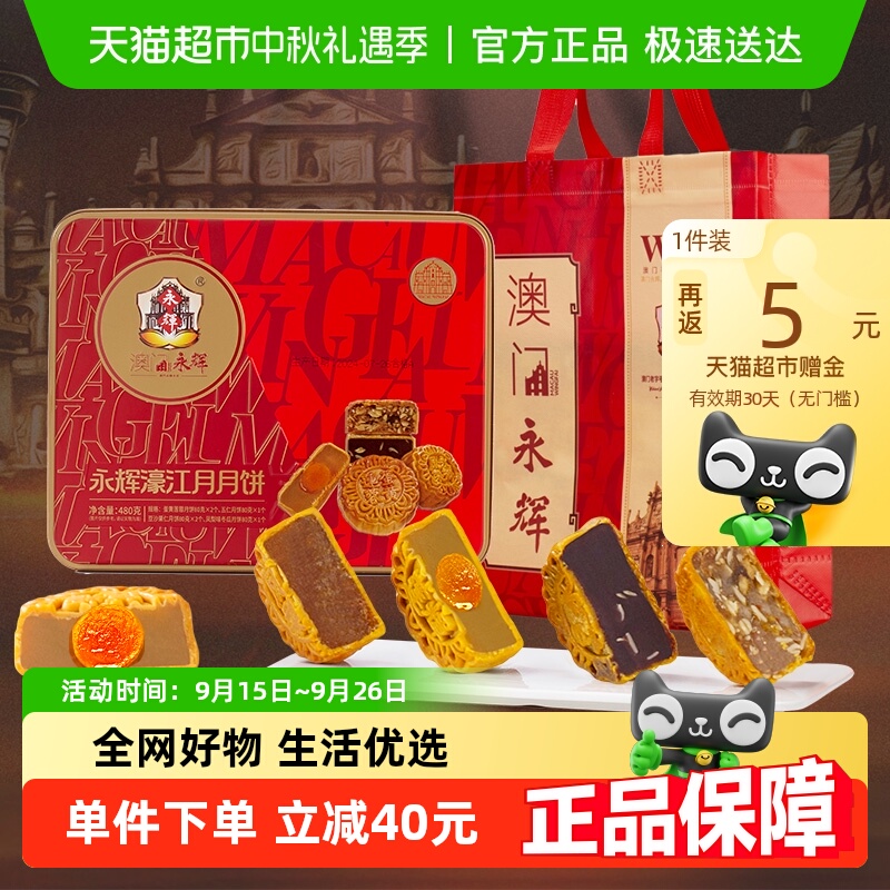 澳门永辉广式月饼濠江月4口味礼盒中秋礼企业购网红零食糕点
