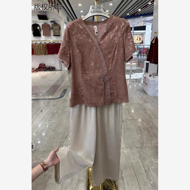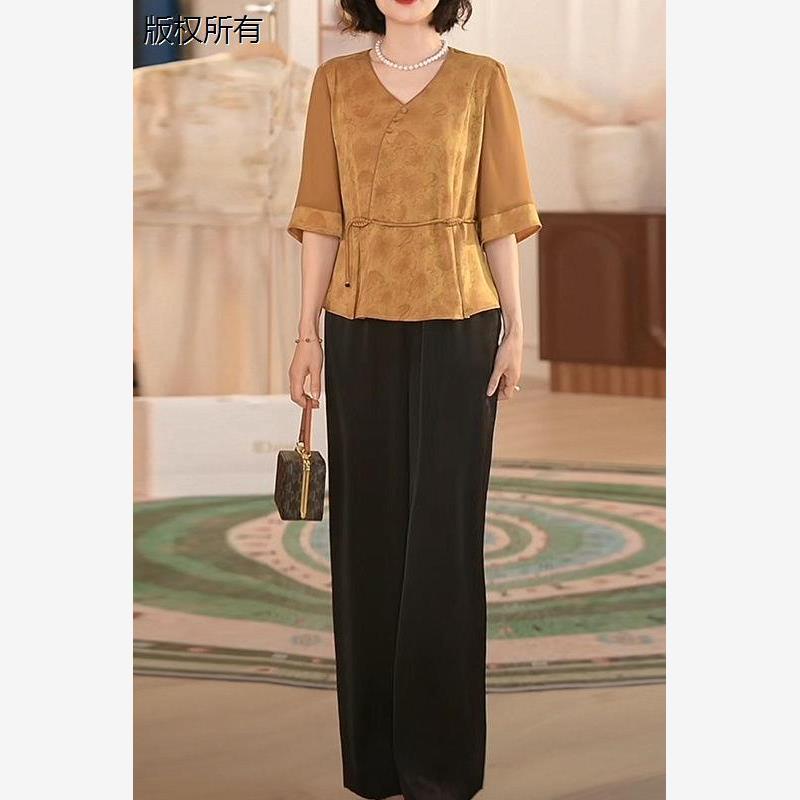 高贵妈妈夏季冰丝香云纱套装女夏装中老年人冰丝上衣裤子两件套
