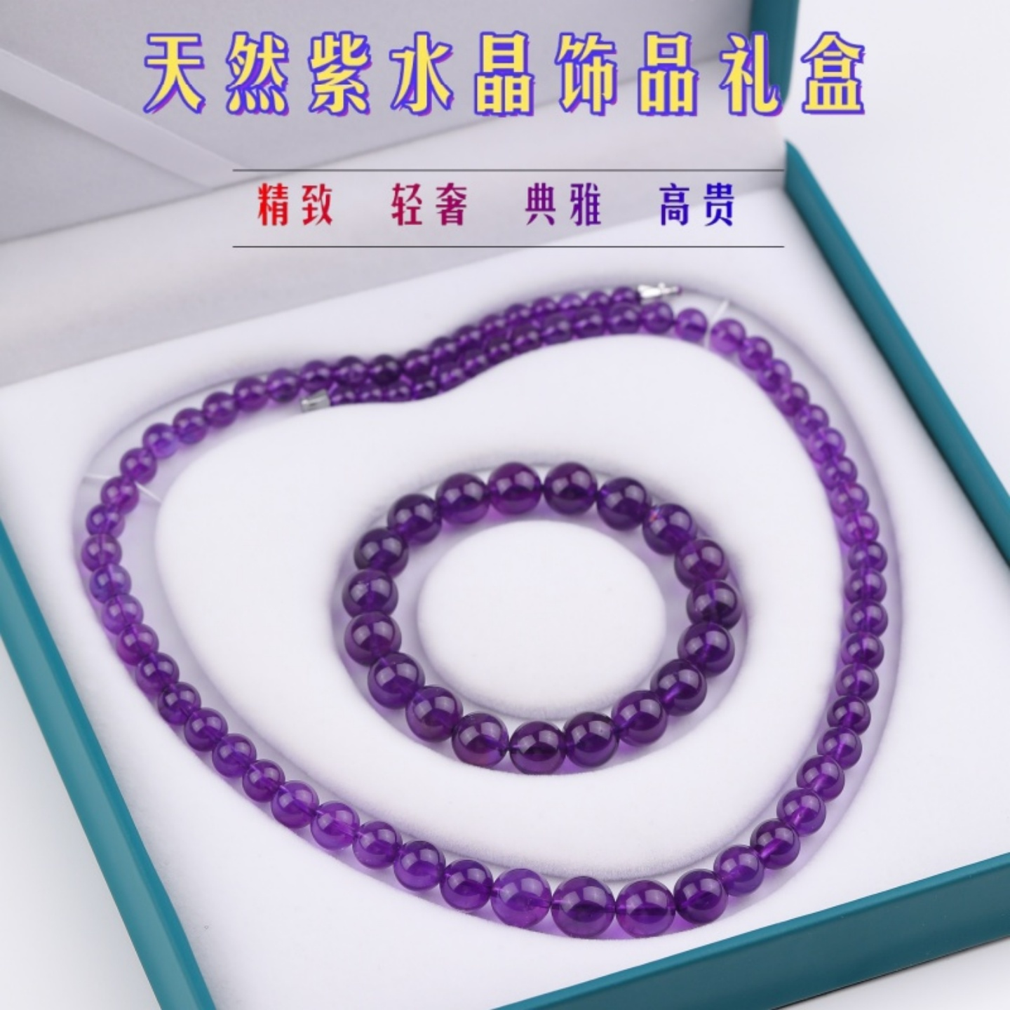 天然紫水晶项链手链套装礼盒高贵典雅百搭饰品送礼送母亲情人闺蜜