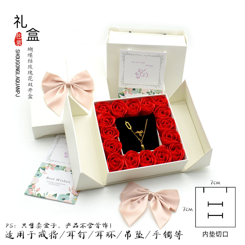 高档玫瑰花双开礼盒高贵送妈妈礼包装盒母亲节礼盒空盒玫瑰花时尚