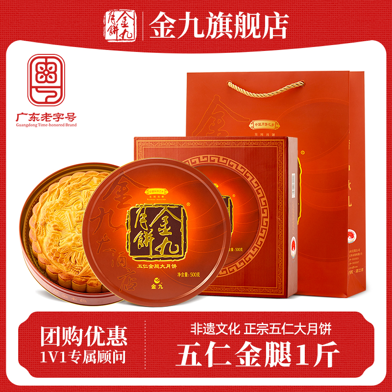 【金九旗舰店】金九伍仁金腿五仁月饼160g中秋礼盒湛江吴川特产