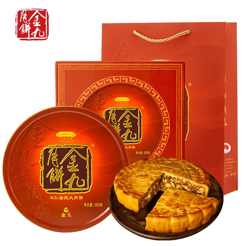 金九大月饼伍仁金腿大饼2000g4斤装吴川特产五仁火腿中秋送礼礼盒