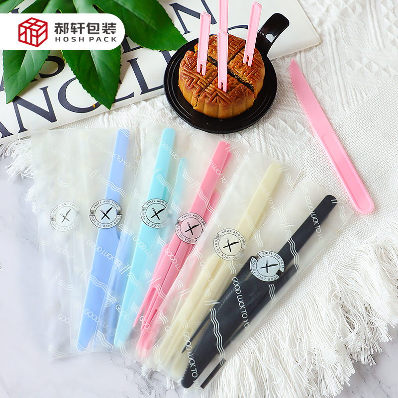 一次性月饼刀叉套装组合广式水果叉糕点高档餐具食品级黑色透明