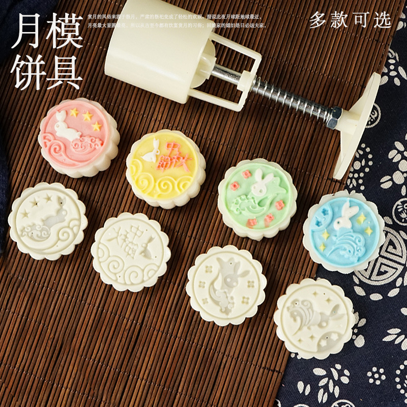 中秋团圆卡通兔子月饼模具手压冰皮广式桃山皮50g63g75g100g套装