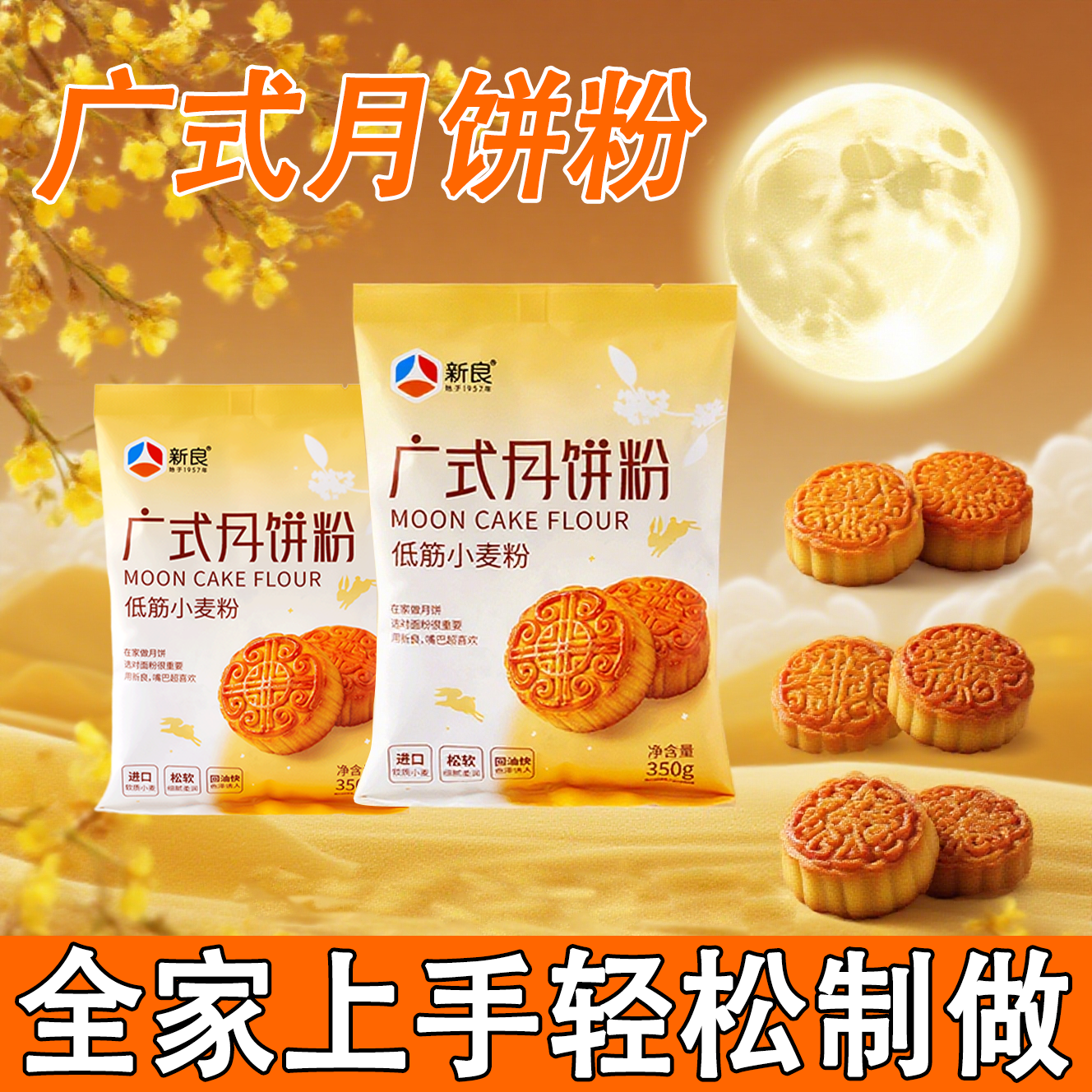 新良广式月饼预拌粉套装全套可做蛋黄红豆沙中秋月饼粉材料可用粉