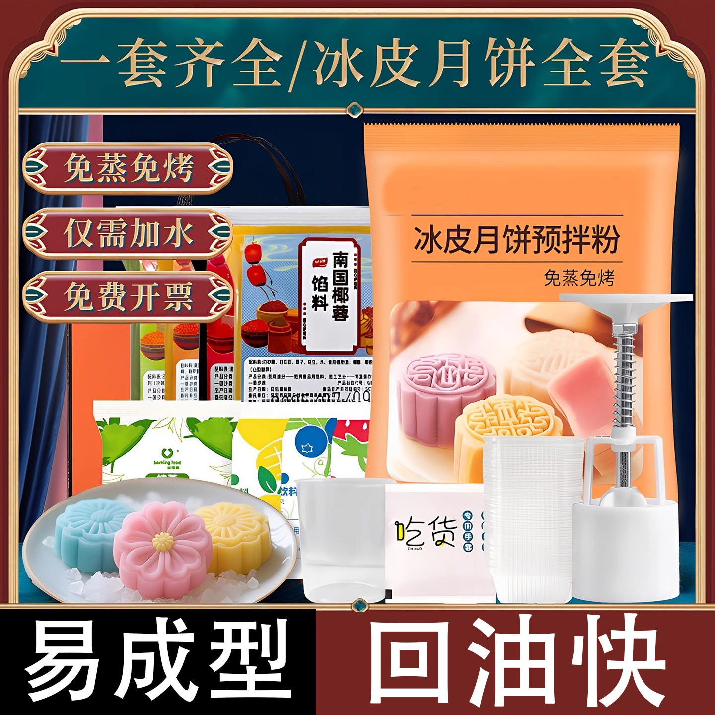 冰皮月饼预拌粉广式馅料套装自制材料商用水晶饼皮无糖免蒸制作家