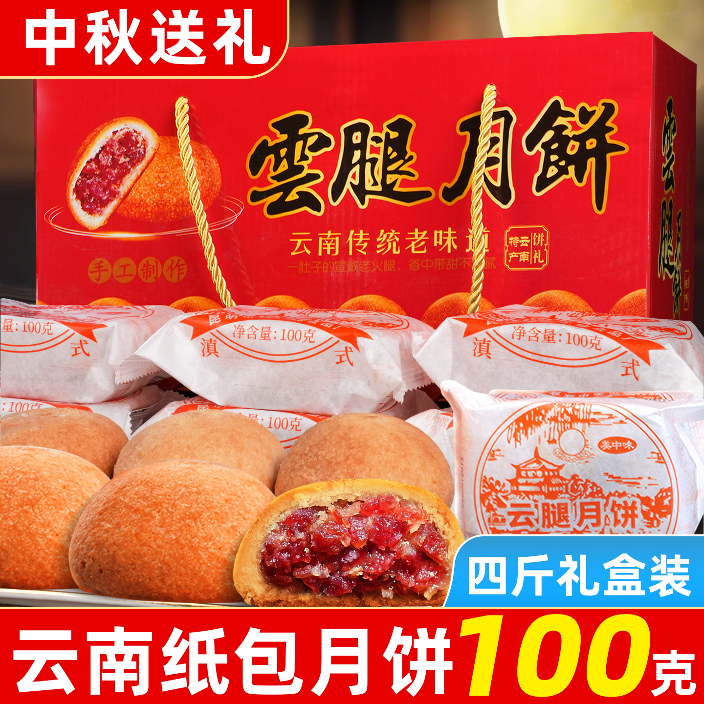 100gx10枚云腿月饼云南特产宣威火腿纸包滇式云腿蛋黄散装多口味