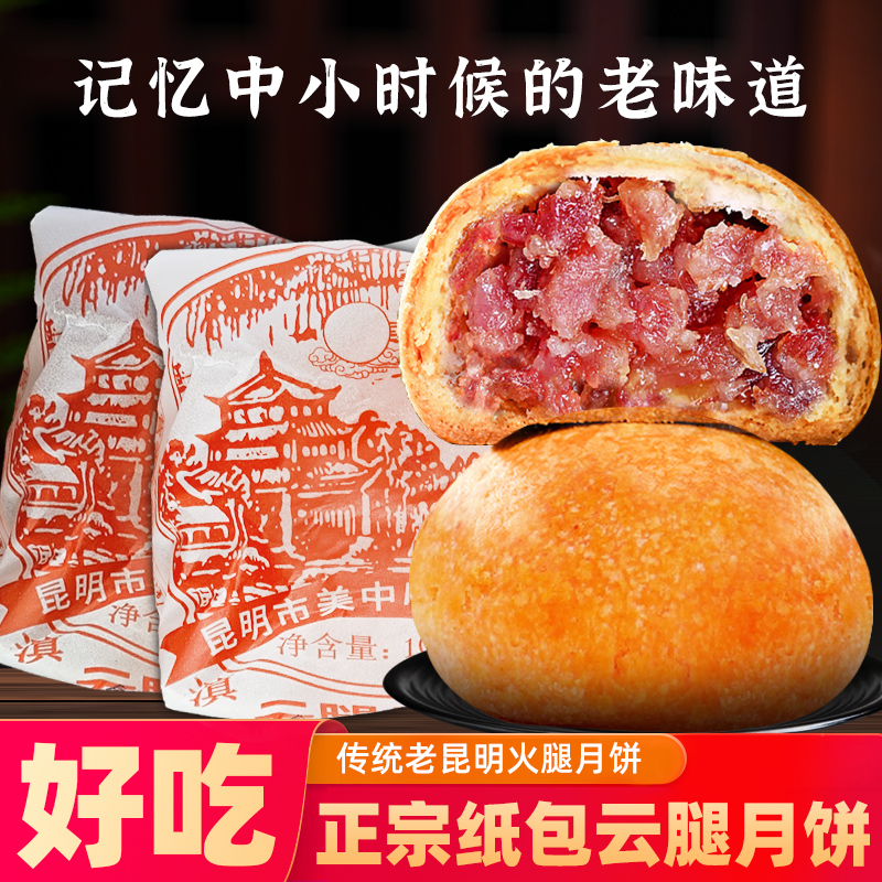 云南云腿月饼老式纸包月饼酥皮宣威火腿饼滇式100g中秋月饼礼盒装