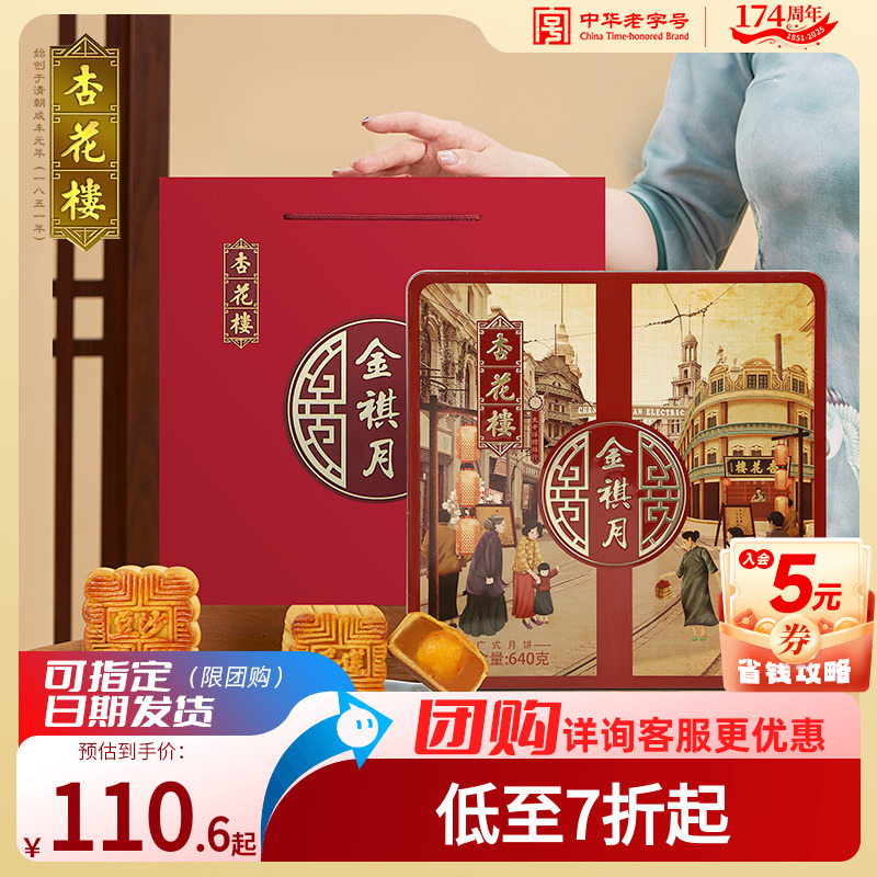 杏花楼广式豆沙月饼上海下午茶点零食小吃糕点伴手礼蛋黄莲蓉五仁