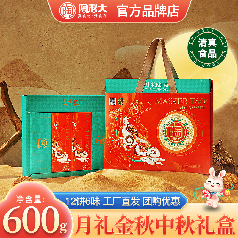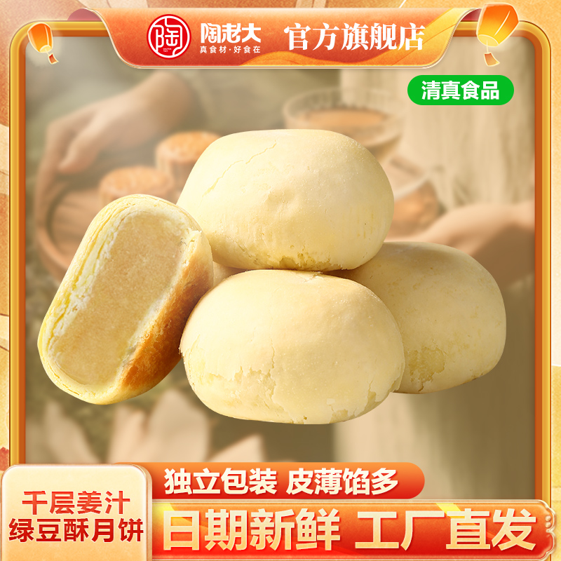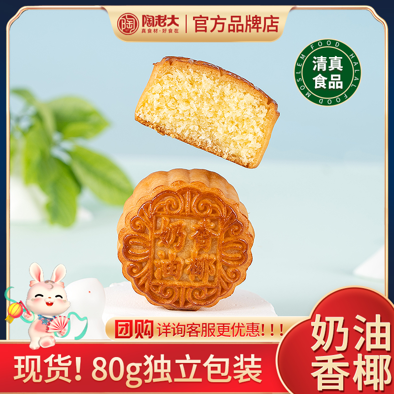 速发清真食品陶老大莲蓉蛋黄月饼广式传统手工中秋糕点散装送礼零