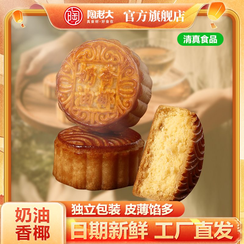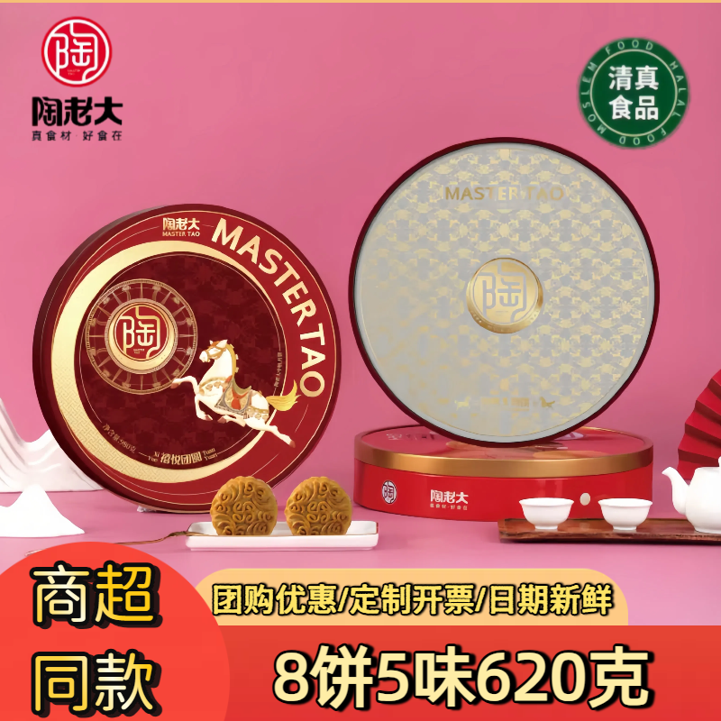 清真食品陶老大莲蓉蛋黄月饼广式传统手工中秋糕点散装送礼零食