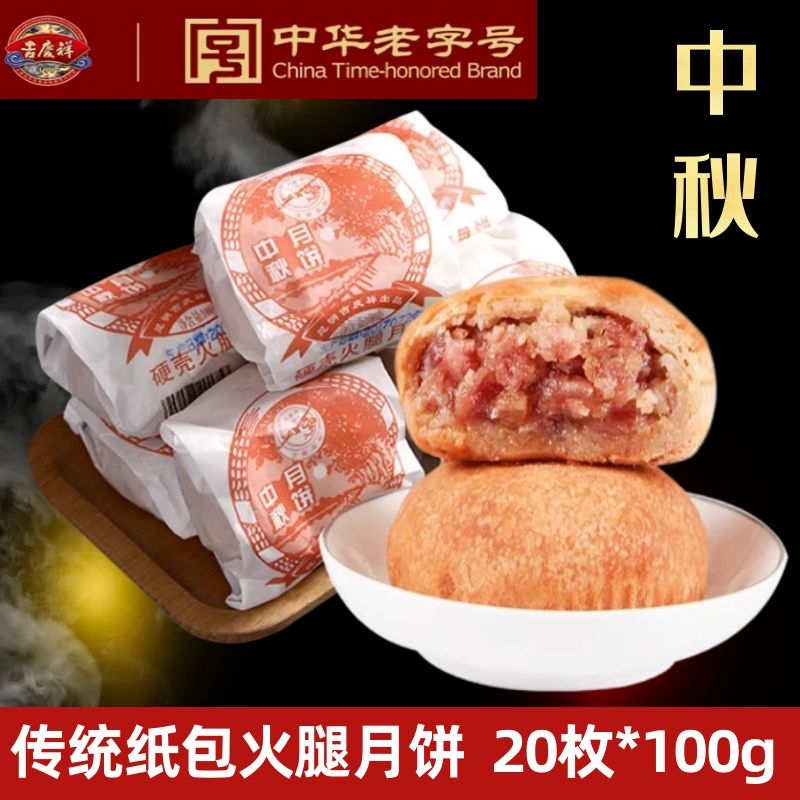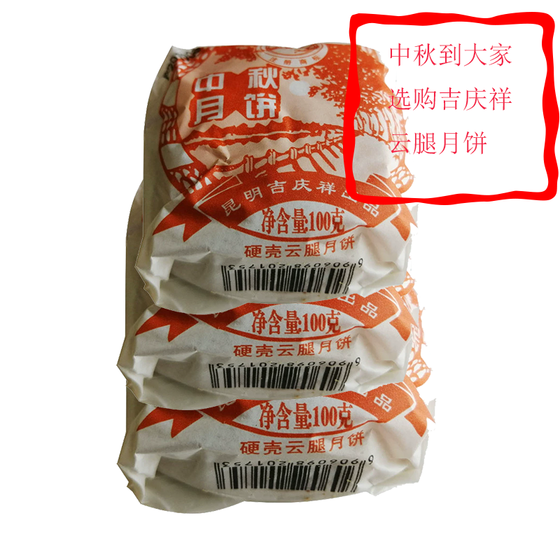 中华老字号昆明吉庆祥纸包云腿月饼100g云南硬壳火腿月饼滇式月饼