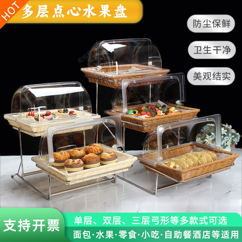 酒店商用面包蛋糕展示架仿藤多层点心架自助餐展示盘水果盘带盖