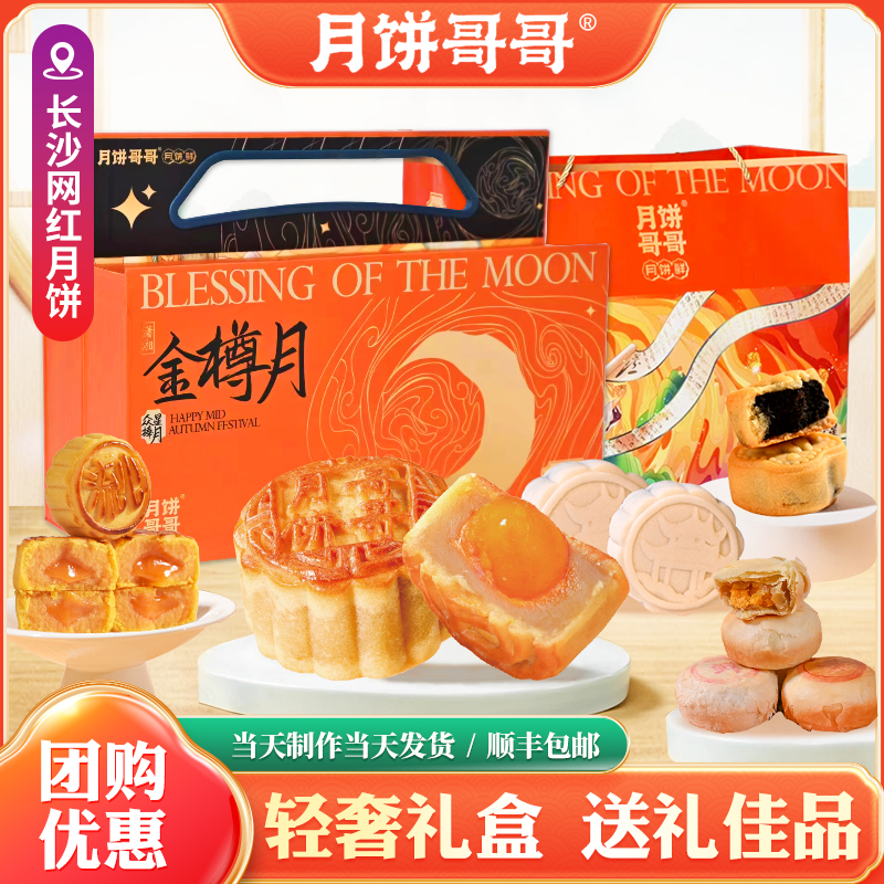 正宗月饼哥哥广式酥皮莲蓉蛋黄月饼正宗长沙网红中秋送礼物旗舰店