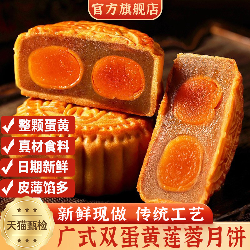 正宗广州低糖蛋黄白莲蓉月饼广式手工咸蛋黄白莲蓉中秋酒家礼盒装