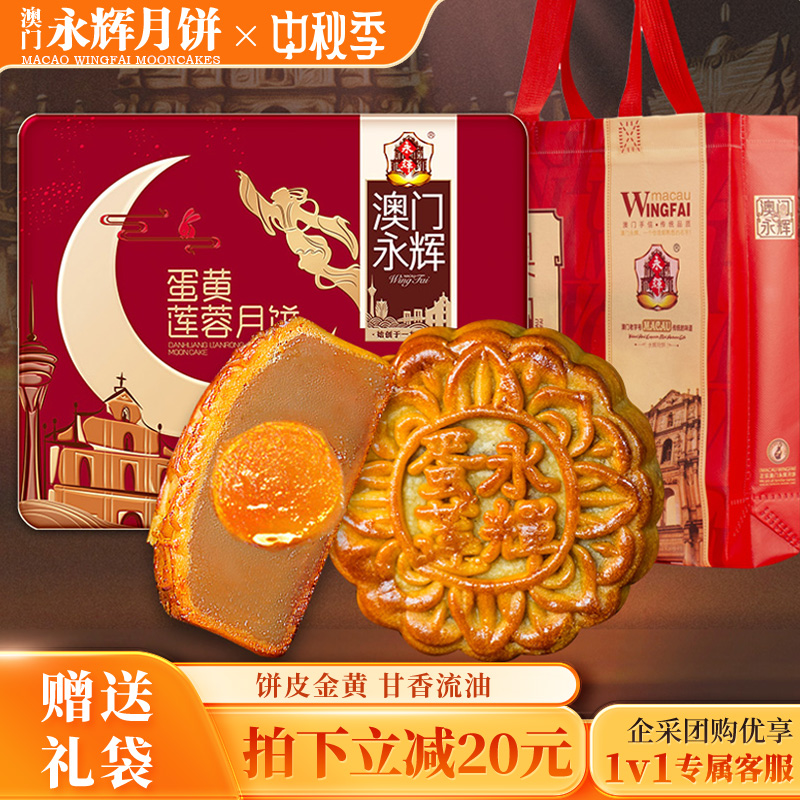 广式蛋黄白莲蓉月饼铁罐礼盒装420g中秋节送礼员工团购批发2024年