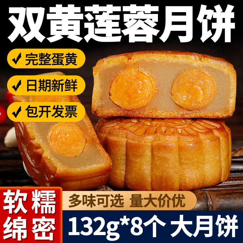 月饼双蛋黄白莲蓉广式礼盒装传统手工中秋节送礼员工团购福利批发