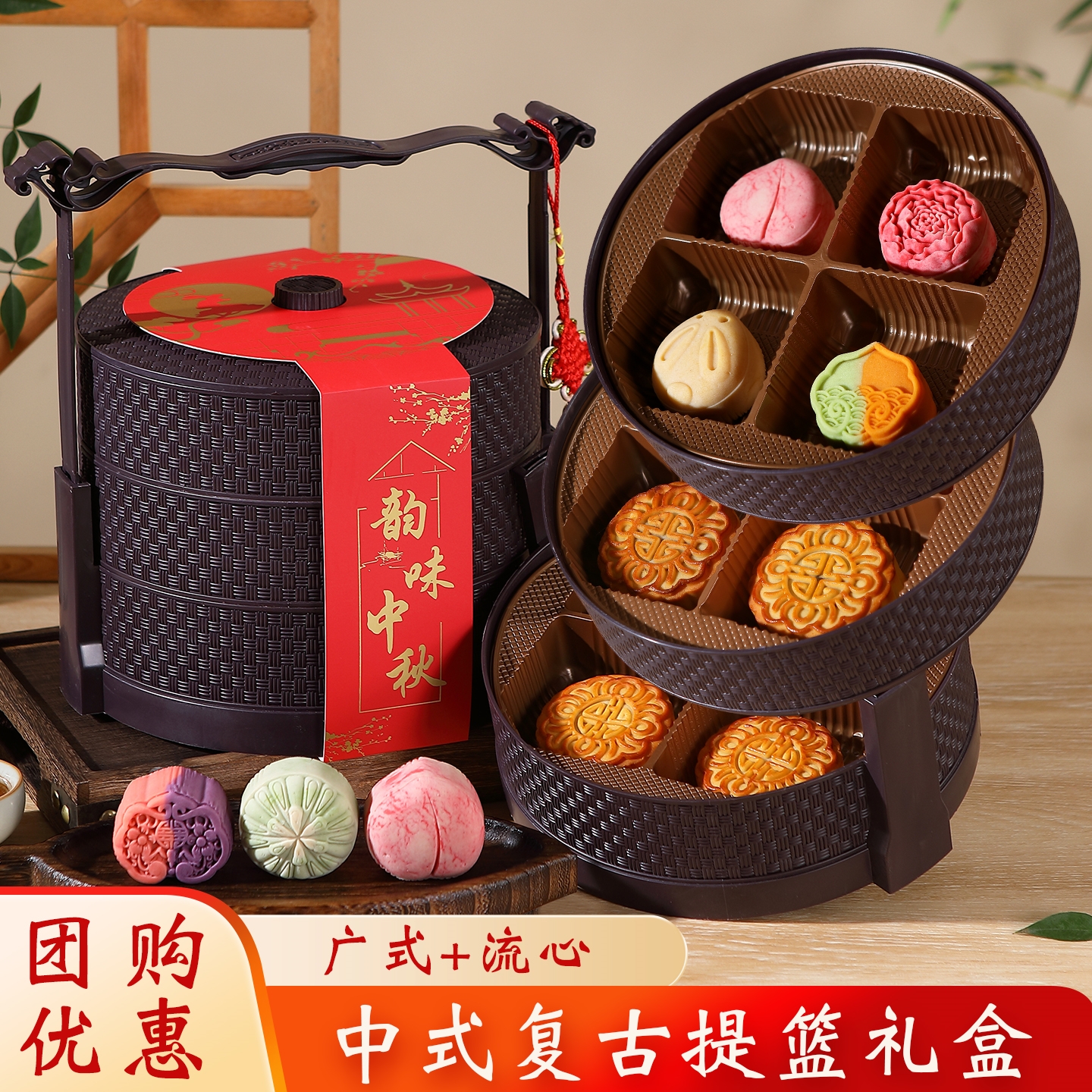 月饼礼盒装中秋节桃山皮流心广式公司员工送礼品团购定制2025新款