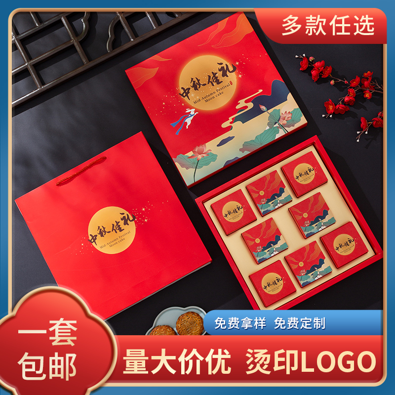 月饼盒定制中秋节高端礼品盒包装盒空纸盒logo印刷翻盖对开盒9粒