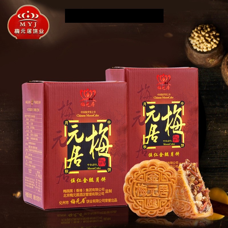 【现做现货】梅元居伍仁金腿月饼广式礼盒中秋送礼五仁老式大月饼