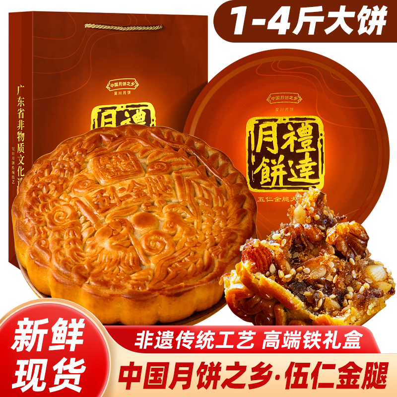 梅元居伍仁金腿月饼广东式化州中秋传统酥皮4斤坚果火腿送礼包邮