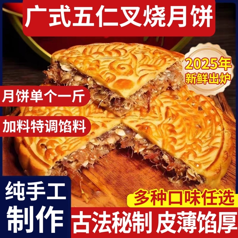 【淘元居】广式五仁叉烧月饼袋装广西伍仁金腿1斤大月饼送礼糕点