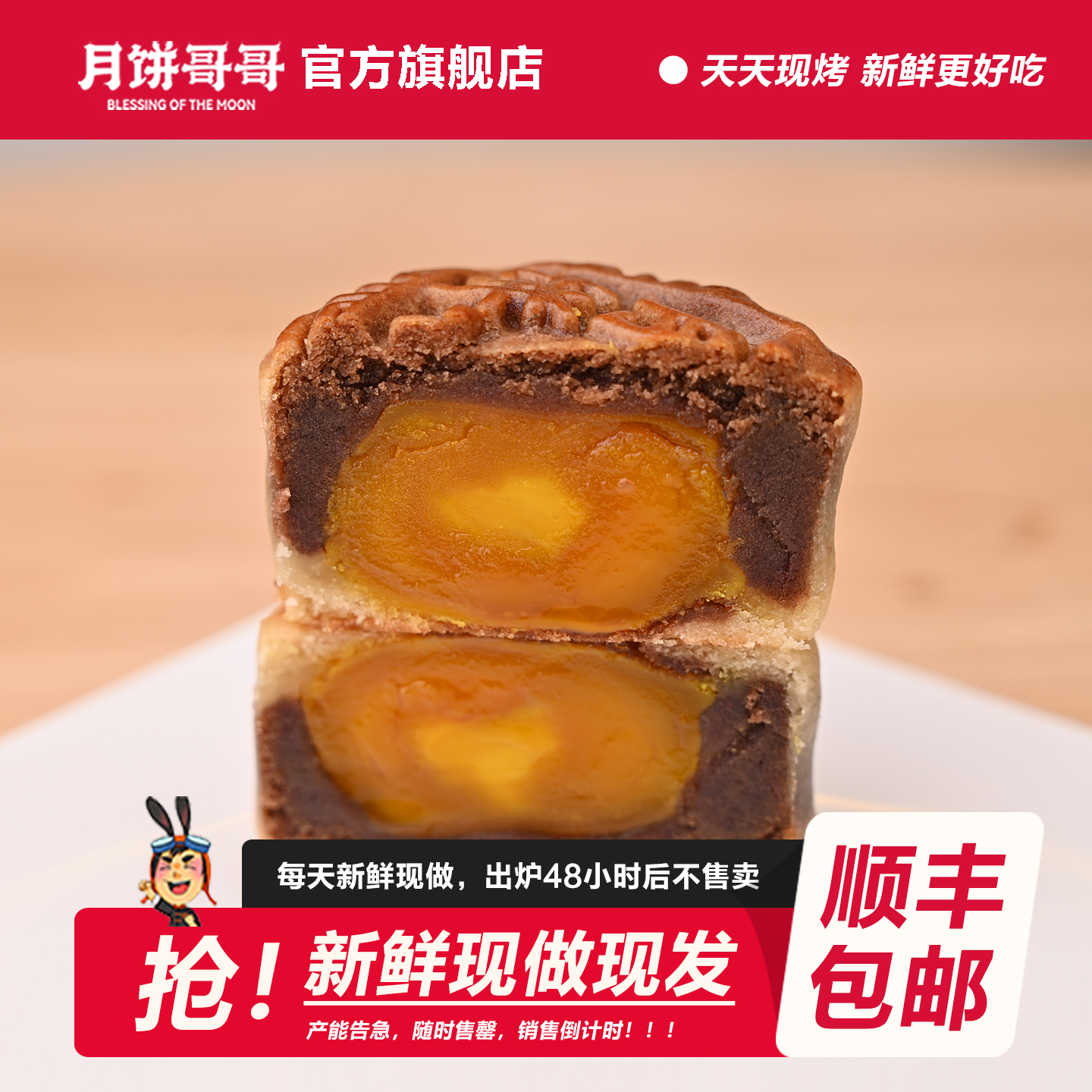 【4个月饼】正宗豆沙蛋黄月饼传统月饼豆沙广式中秋零食糕点批发