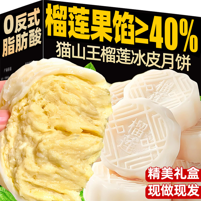 冰皮月饼榴莲官方旗舰店猫山王馅料解馋小零食中秋整箱批发礼盒装