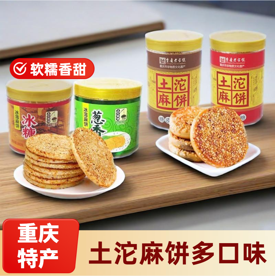 重庆陈建平特产传统糕点麻饼薄脆饼干芝麻馅饼500g独立装土月饼