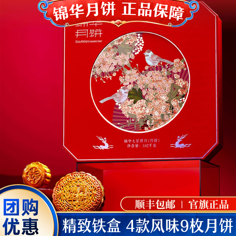 锦华七星伴月月饼礼盒1020g蛋黄豆沙中秋节送礼送人公司福利礼品