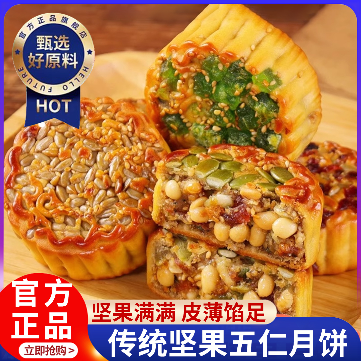 坚果五仁传统月饼好吃香甜中秋送礼月饼果仁饼淄博原味官方旗舰店