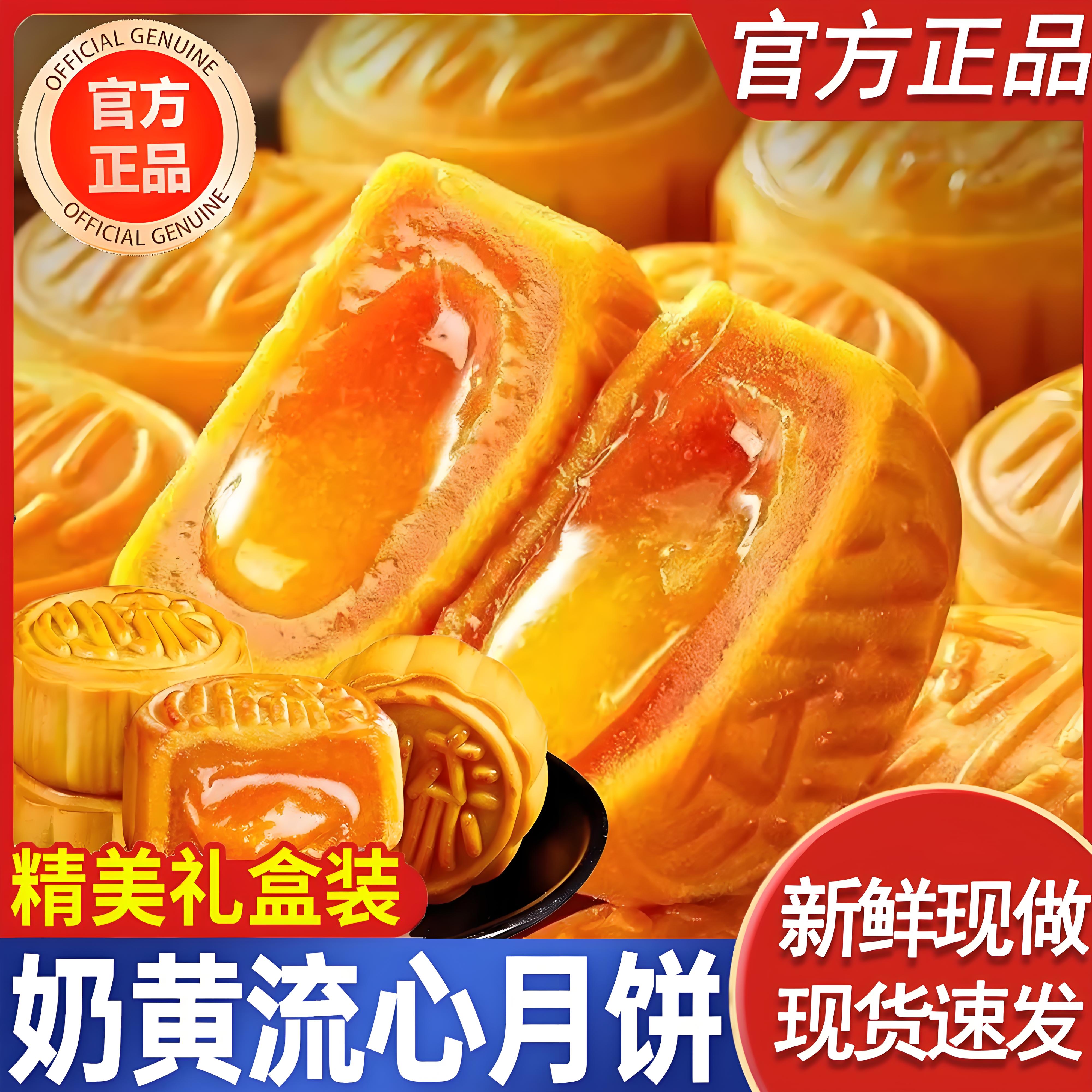 港式流心奶黄月饼广式传统糕点蛋黄流心礼盒装2025中秋节送礼佳品