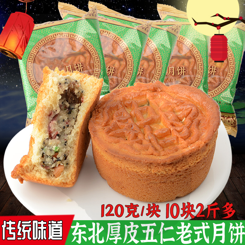东北怀旧老式广东五仁月饼中秋送礼盒装手工酥皮豆沙广式大厚蛋皮