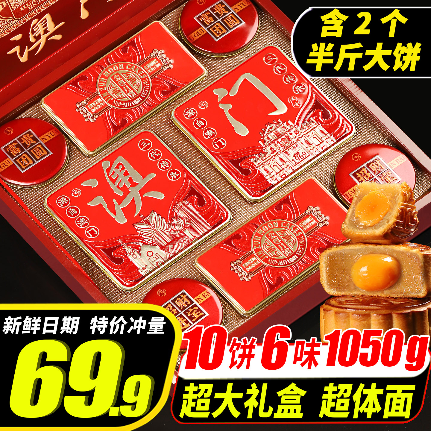 梅元居五仁月饼伍仁金腿火腿广东老式中秋大月饼2斤礼盒一旗舰店