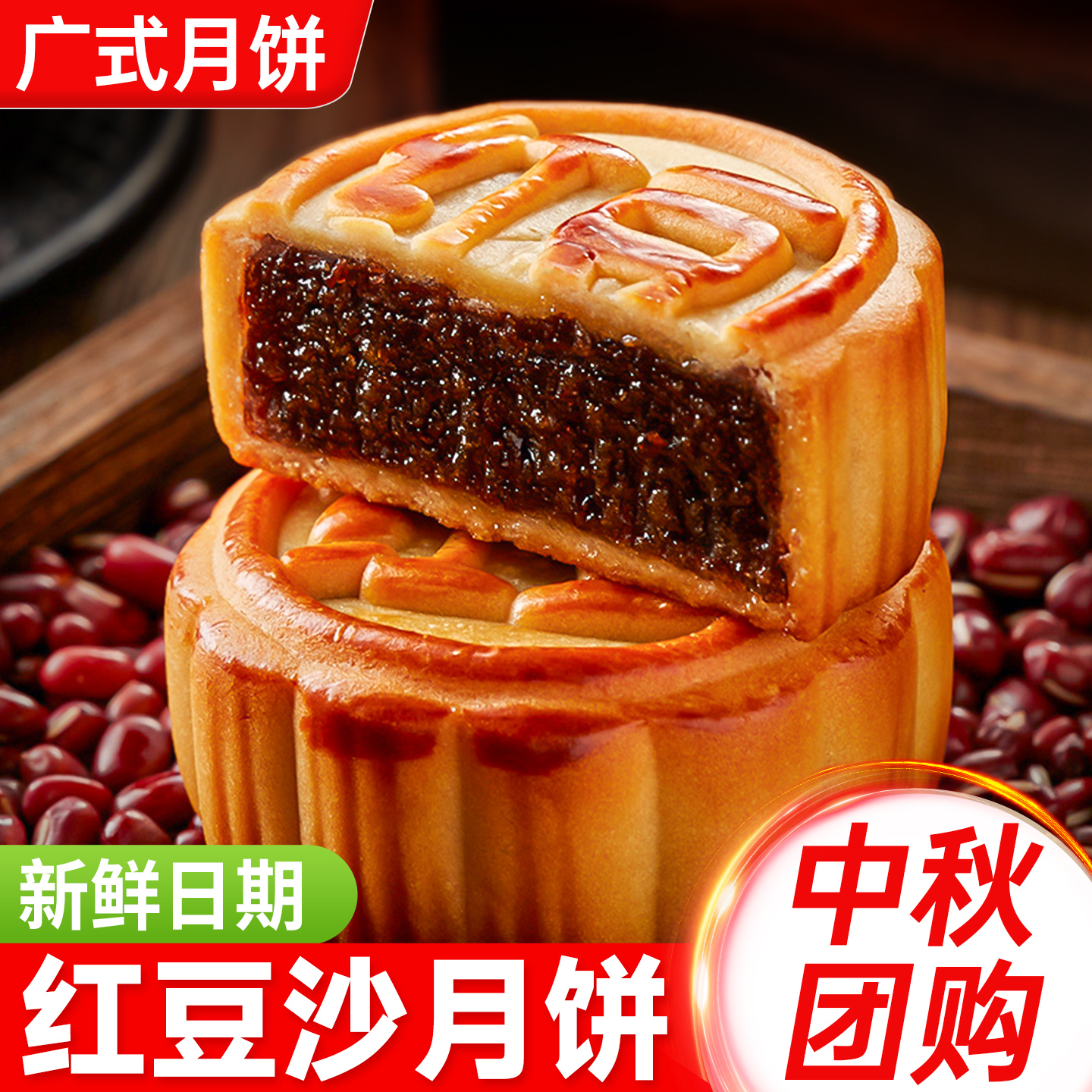 红豆沙月饼广式早餐糕点休闲解馋小零食中秋节礼盒装送礼团购批发